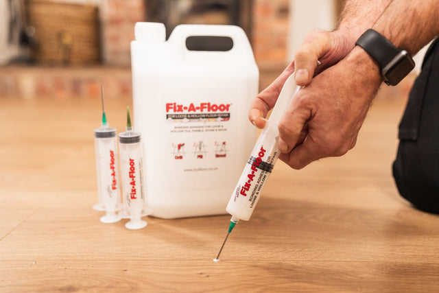Fix-A-Floor 5 Litre Tub Kit with 6 Syringe applicators - Extra Strength Bonding Adhesive for Loose and Hollow Tiles