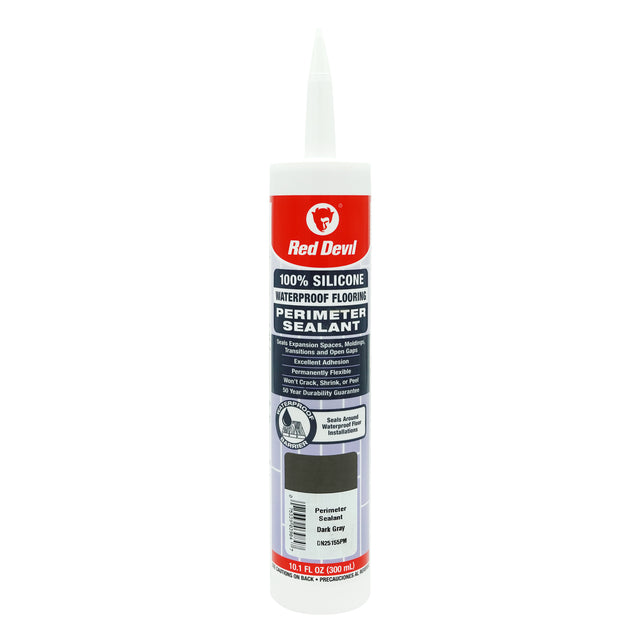 Red Devil 100% Silicone Perimeter Sealant is specially formulated to seal around waterproof flooring installations, including Laminate, LVP, LVT, Engineered Hardwood, and Tile floors. This medium-modulus sealant accommodates for floor swelling or contracting and is designed to blend with all general flooring colors.