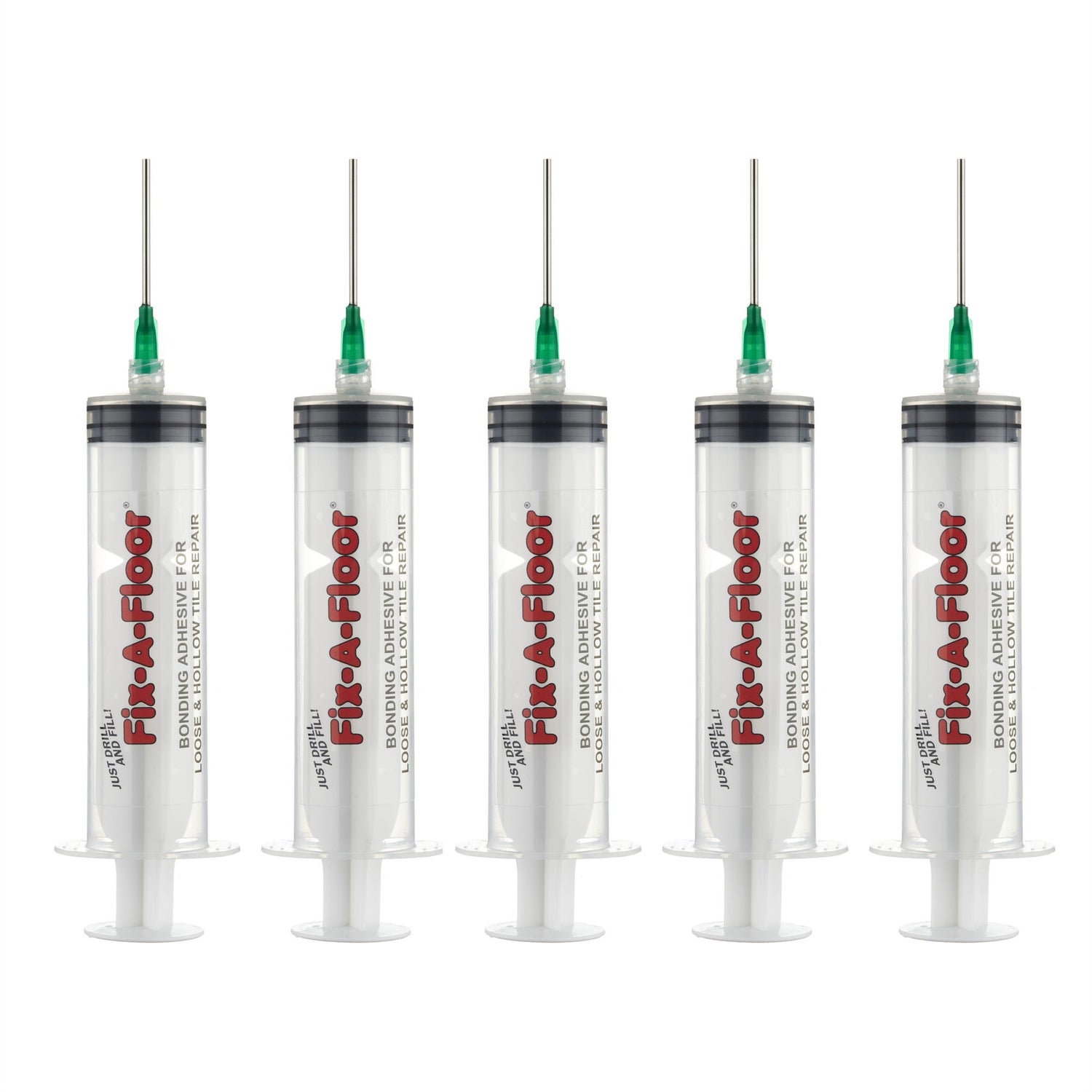 Pack of 5 Fix-A-Floor 60ml Syringe Kit with flat stainless steel needles, Plastic applicator & Sealing Caps (Adhesive Not Included)