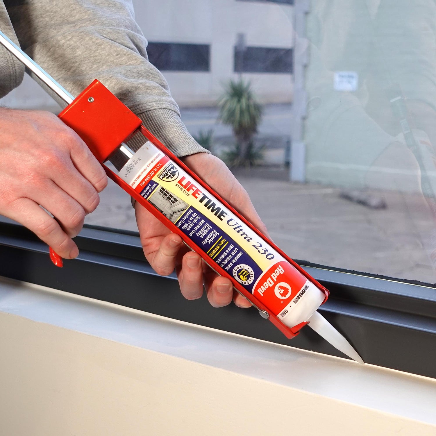 The Red DevilLifetime® Ultra 230 Premium Elastomeric Acrylic Latex Sealant is a high-performance, multi-purpose sealant formulated to last for the lifetime of your home. This unique formulation provides the maximum level of durability on a variety of substrates indoors or outdoors. It offers excellent paintability and includes HomeShield™ Antimicrobial Protection to ensure against the worst types of mold and mildew.